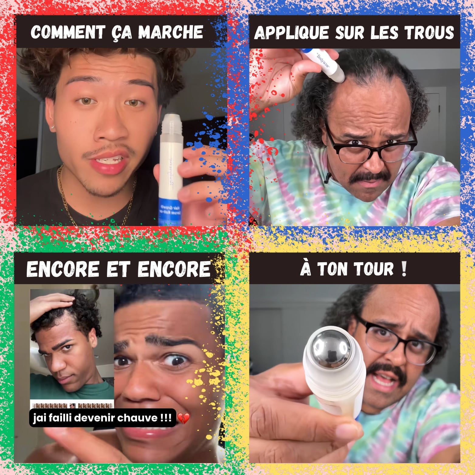 1. Appliquer directement sur le cuir chevelu sec pendant 2 minutes, en couvrant toutes les zones clairsemées.